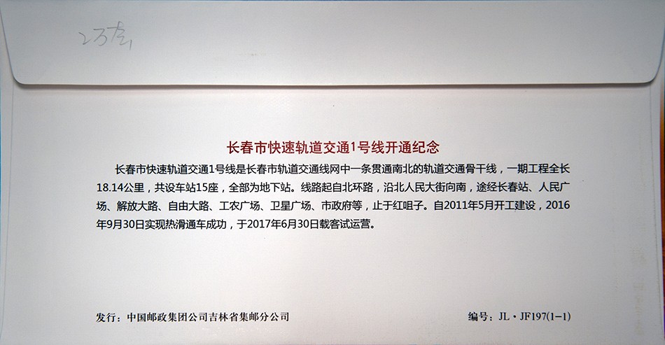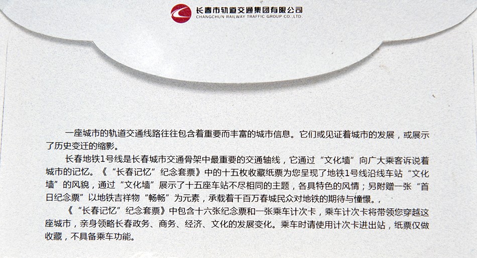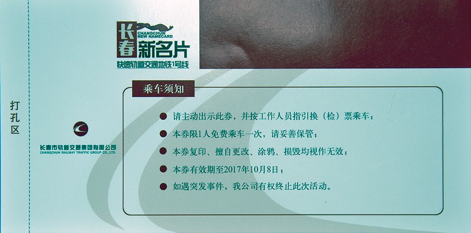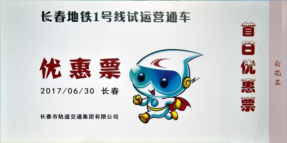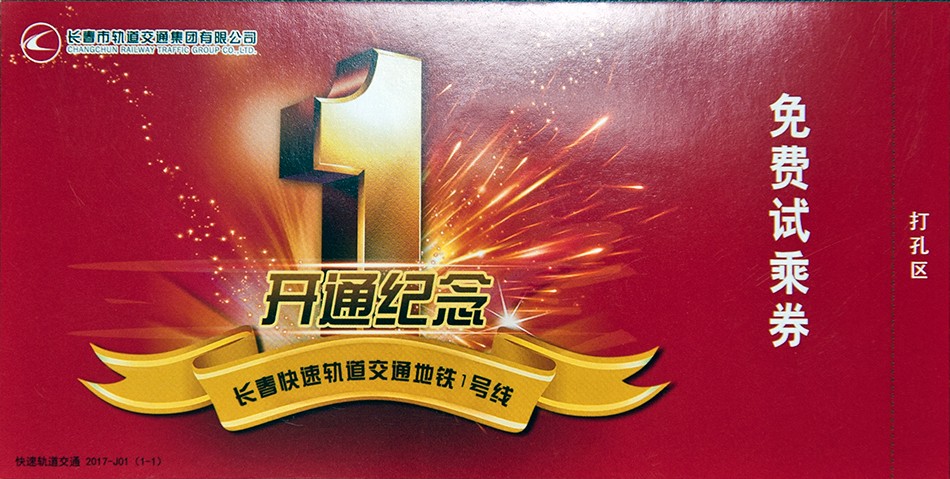 長春輕軌1號線“長春站-衛光街”試運營紀念車票