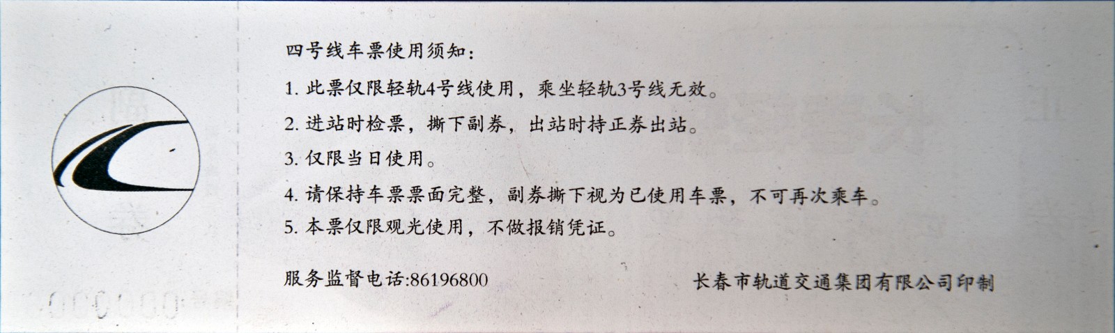 長春輕軌四號線車票