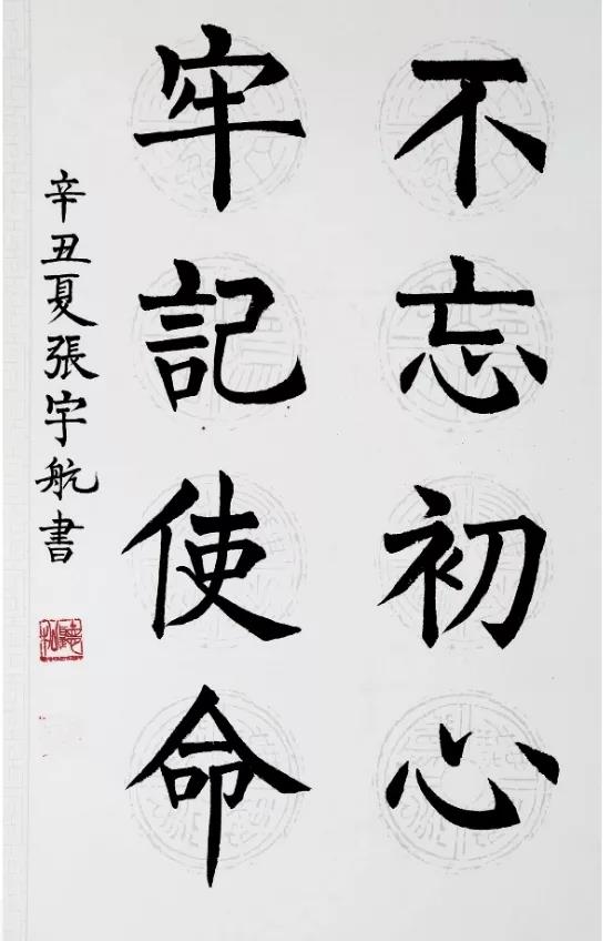 ▲張宇航 《不忘初心 牢記使命》優秀軟筆書法